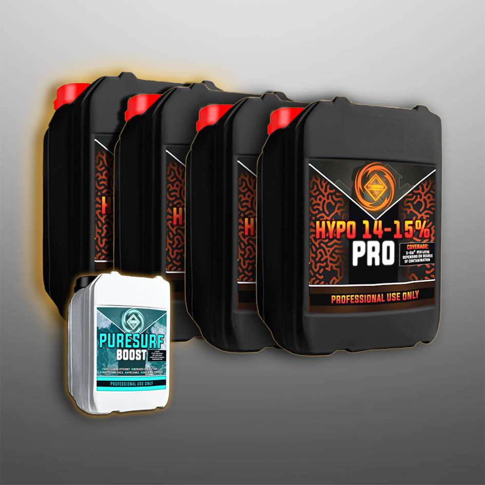 Bundle contents:- 4 x 25 litres of sodium hypochlorite 14/15%